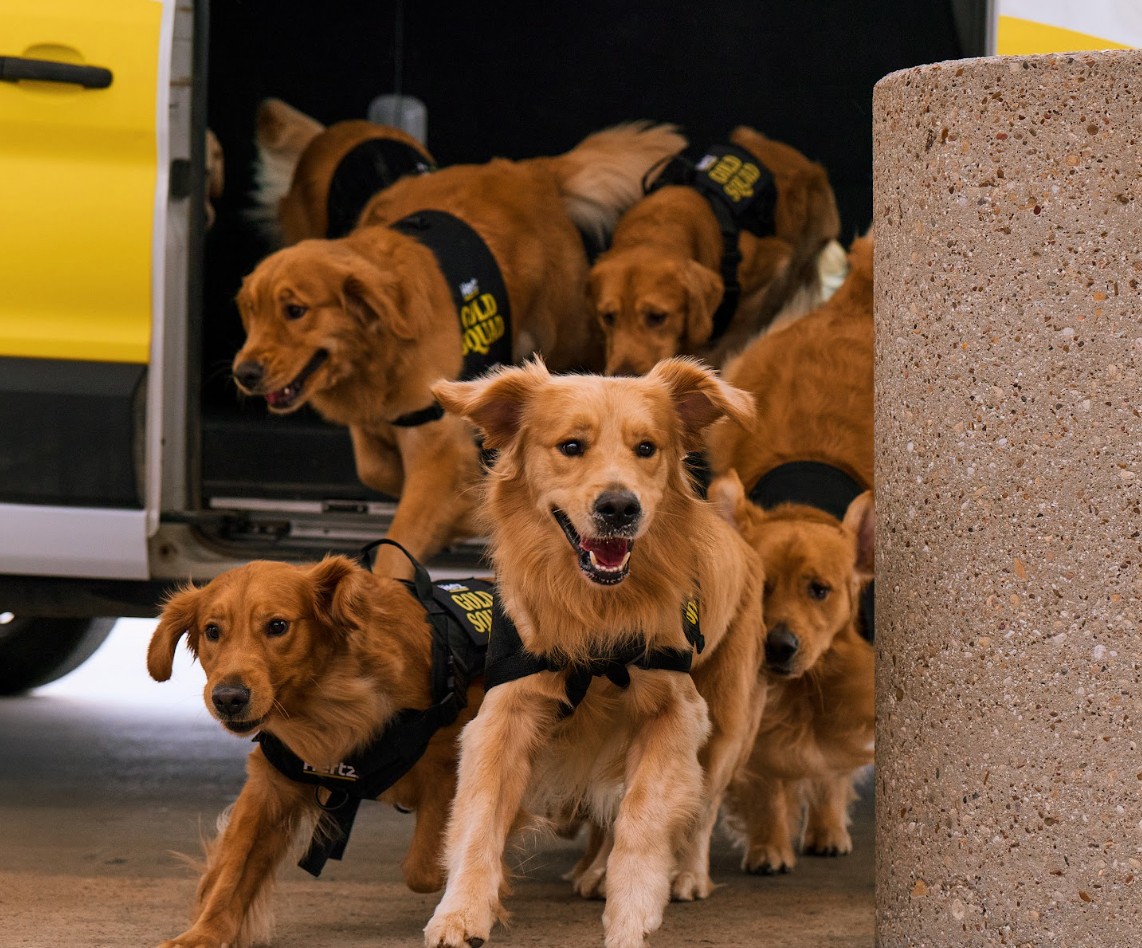 If you’re renting a car at the airport over the Labor Day Holiday, be on the lookout for the Hertz ‘Gold Squad’ of Golden Retrievers.