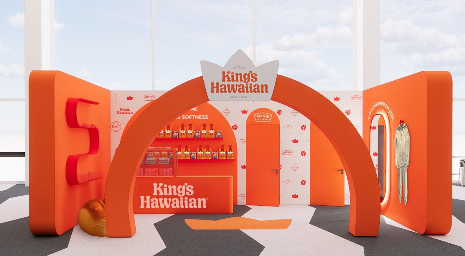 Look for the King’s Hawaiian pop-up kiosk at O’Hare Terminal 2 that looks like this: