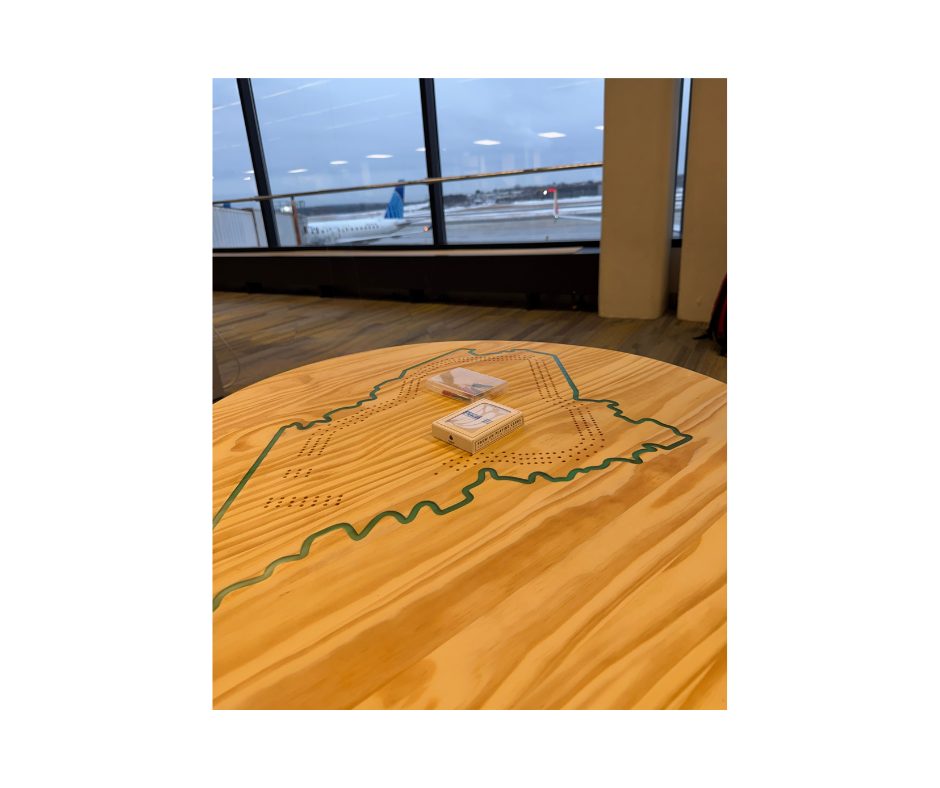 Travelers will now find custom-made Maine cribbage tables where both novice and seasoned plays can sit down for a game before a flight.
