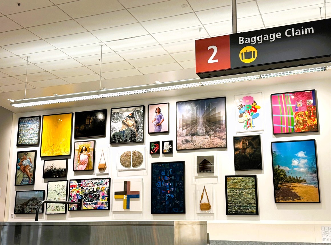 There’s a lot more temporary and permanent public art on the bag claim level too, including this salon style wall featuring more than 20 works of art.