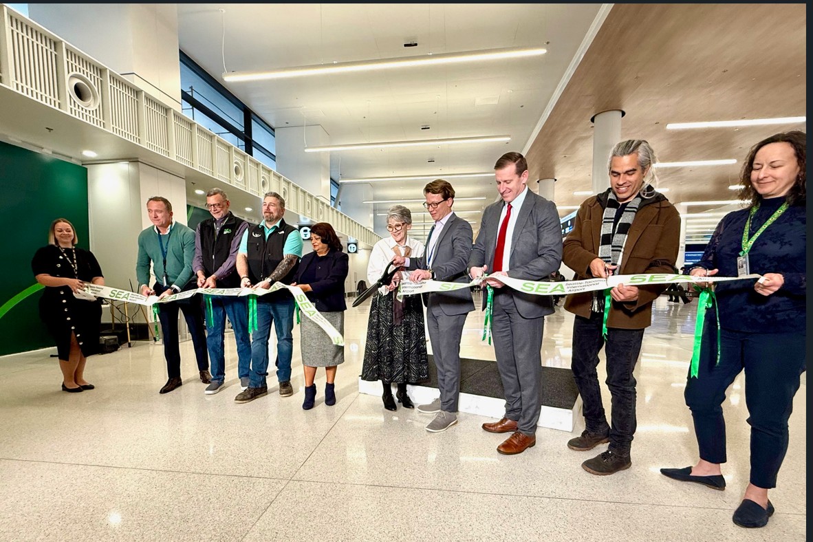 But this week representives from the airport, Alaska Airlines and design/build team HOK/Hensel Phelps brought out the ceremonal big scissors for a ribbon cutting to celebrate the completion of this $546 million ‘Gateway Project and all the benefits its brings to passengers.