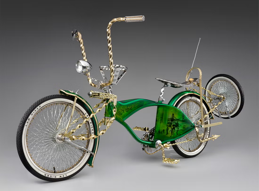 “Bicycles have been integral to lowriding since the movement began in the late 1940s. Like their modern counterparts, early lowrider bicycles featured custom paint jobs, lowered seats, modified handlebars, and other parts and accessories that reflected the personalities of their builders.