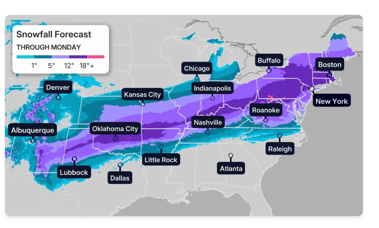 There are at least 17 cities affected American Airlines’ travel alert for January 15-16, including