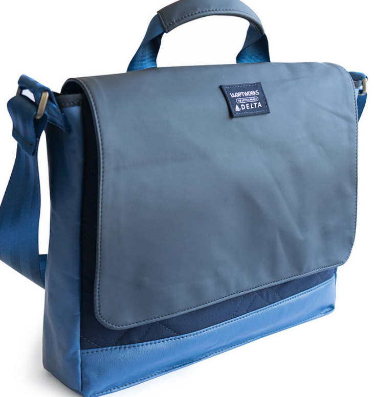 When Southwest Airlines did a cabin design that included, among other things, 80,000 lighter seats, they were left with 43 acres of leftover leather. That leather ended up in Portland, Oregon with Looptworks, a company that takes high-quality excess material and upcycles it into limited edition, high-quality goods. In this case, Looptworks has taken the